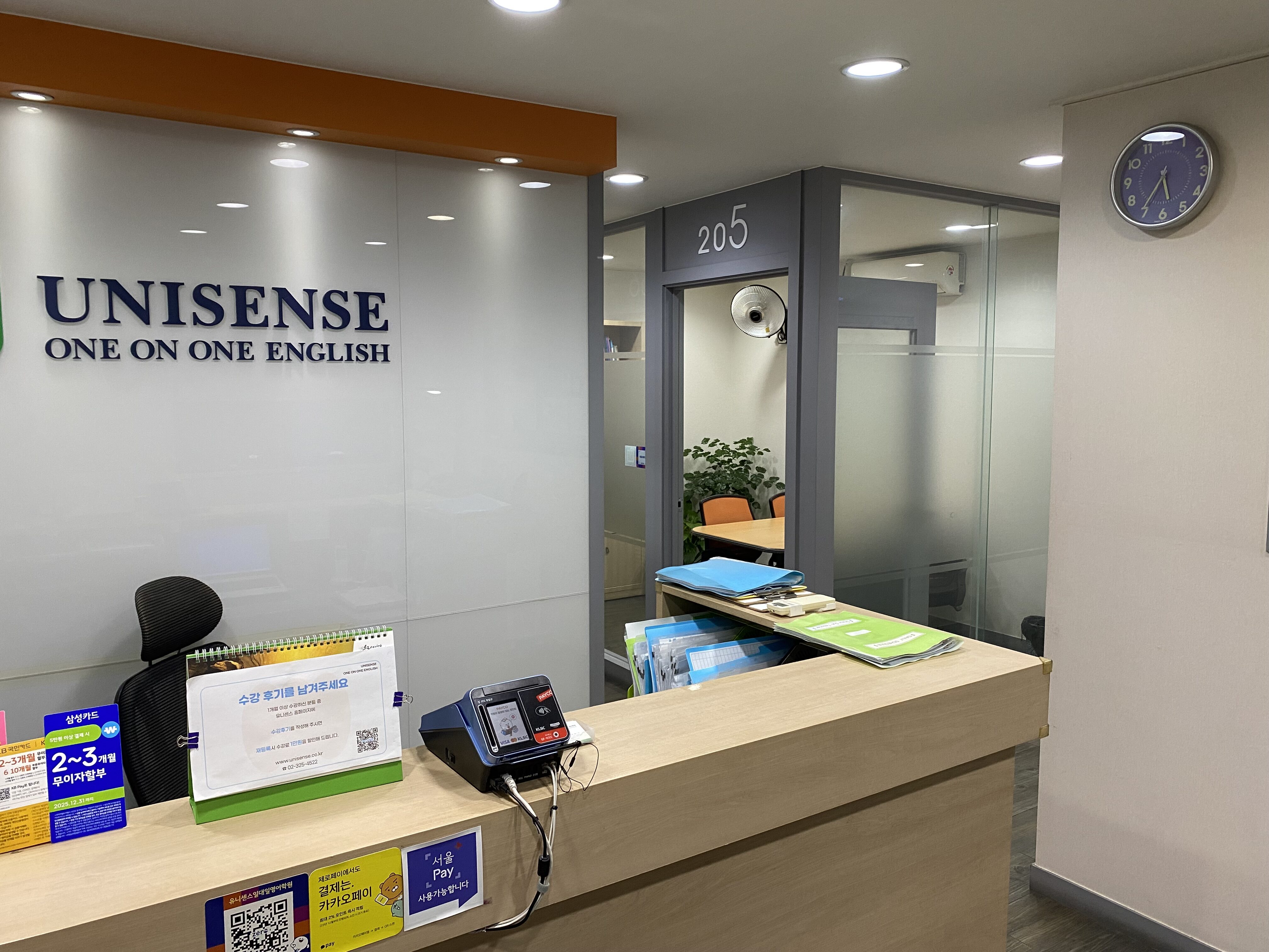 후기가 많이 없었지만 일대일 영어회화이고도 합리적인 비용이었던 여기 홍대 유니센스 영어학원을 다니게 되었습니다.